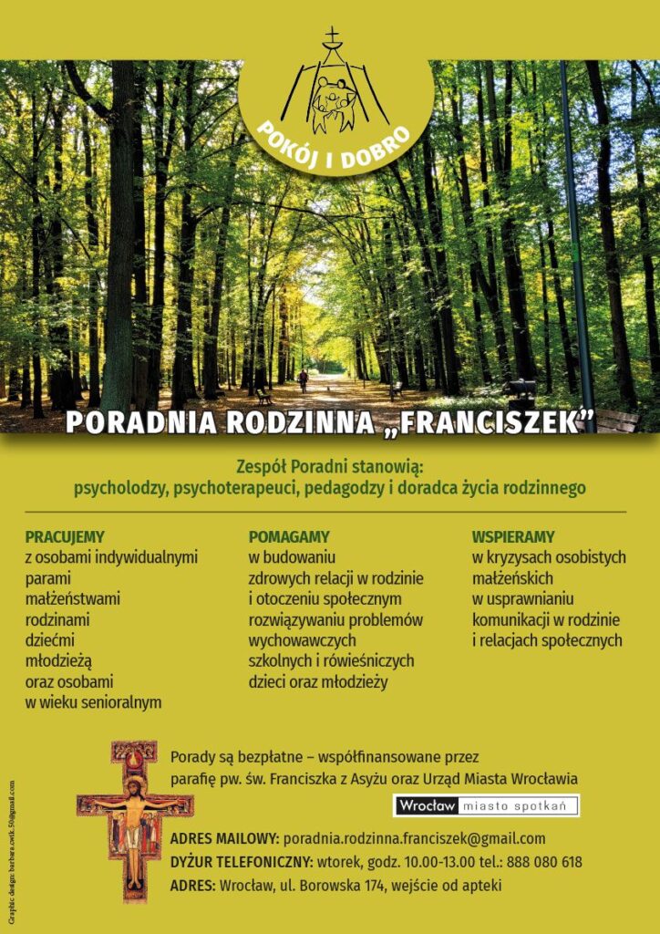 Uprzejmie informujemy, że od lutego 2026 roku wznowiła działalność Poradnia Rodzinna „Franciszek” znajdująca się na terenie parafii pw. św. Franciszka z Asyżu.